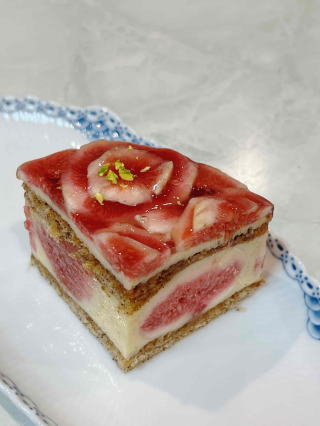 構成:レモン風味のジョコンド、レモン風味のフロマージュムース、無花果ジャム、無花果のクレムー、無花果のグラサージュ