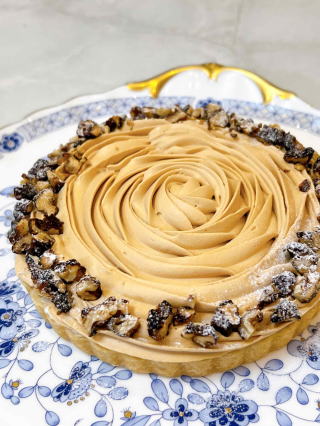 構成:ブリゼ生地、シュー生地、珈琲風味のクレームムースリーヌ、珈琲風味のマロンクリーム、珈琲チョコ、キャラメル風味の洋梨コンポート
